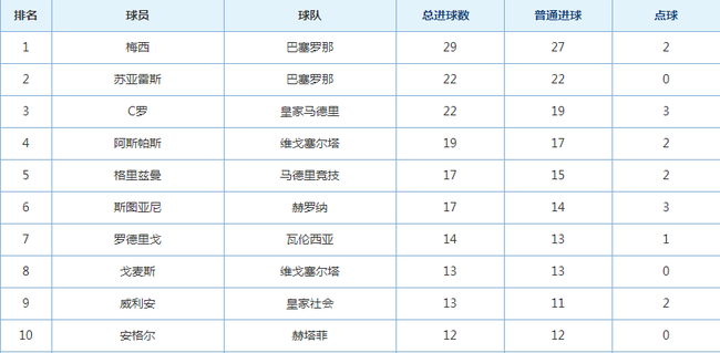 西甲射手榜情况